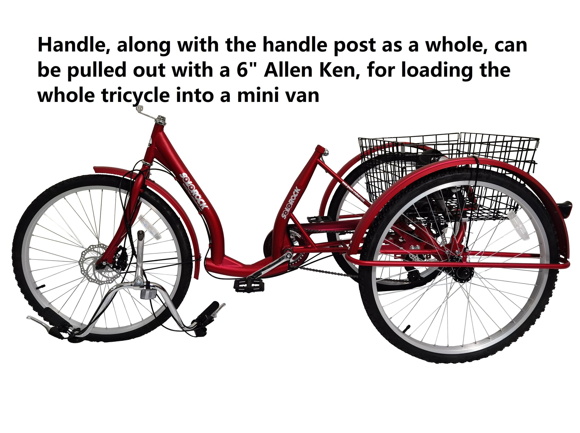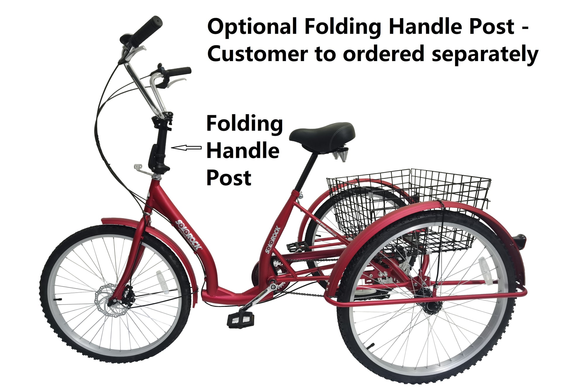 - Optional Folding Handle Post for easier access to a SUV, Mini van - to be ordered separately https://solorock.ca/products/solorock-tricycle-handle-post-aluminum-folder?_pos=1&_sid=712a20dde&_ss=r