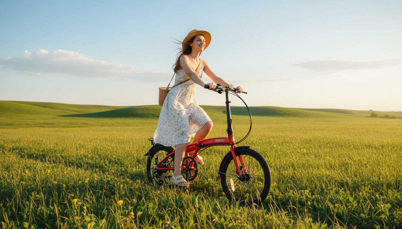 The SoloRock Wonder 8-Speed Folding Bike features 20" wheels for a smoother, more stable ride while maintaining a compact, foldable design. Fully equipped with a rear rack, fenders, and an 8-speed drivetrain, it's perfect for commuting, errands, and urban adventures in any weather. Powerful hydraulic disc brakes make for powerful stopping in all conditions!